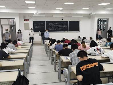 学院要求每位监考人员熟知监考工作流程,要求监考人员提前三十分钟到达指定地点,签到后进入考场,做好清场工作,强调考场纪律,检查学生证件及用品,并在黑板上写明考试科目、起止时间及考场提示内容。2022年6月18日上午,在学院主要领导带领下,学院全体院领导班子成员、学工办负责人、考务负责人,对考场开展巡视巡查工作。考试过程中,监考教师都能做到履职尽责,提前写好考试须知板书,认真检查考生的相关证件,严格管理,收卷规范有序。